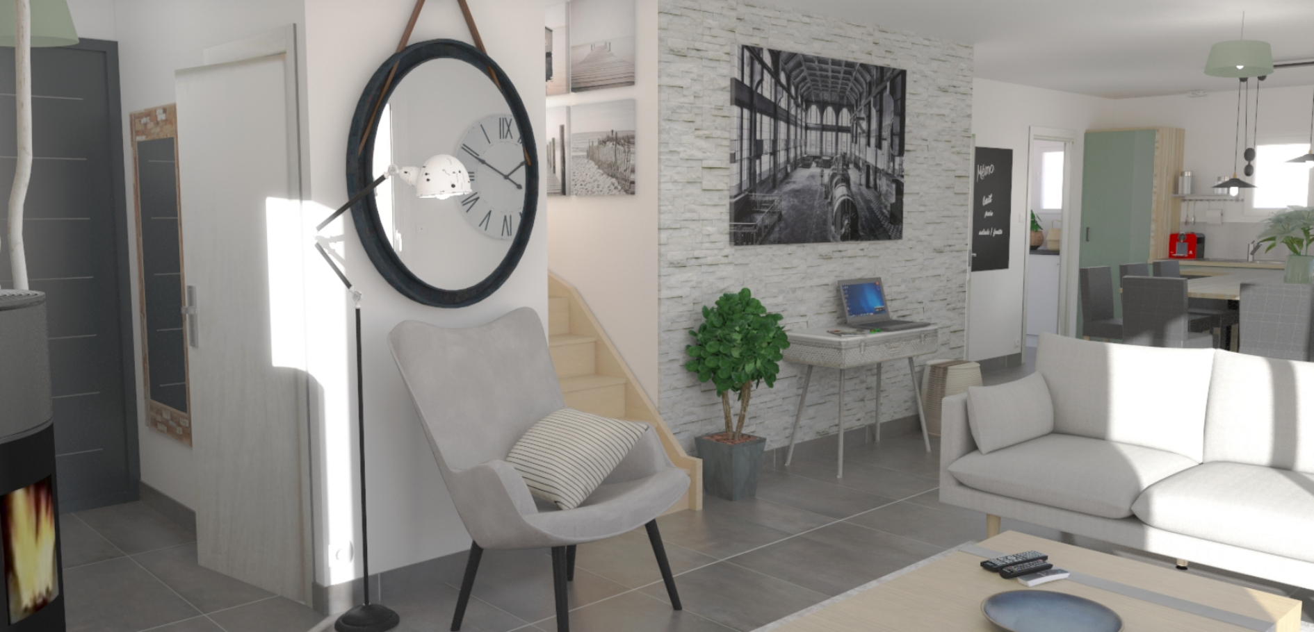 Faire une projection d’aménagement d’une pièce de vie d’une maison en cours chantier.