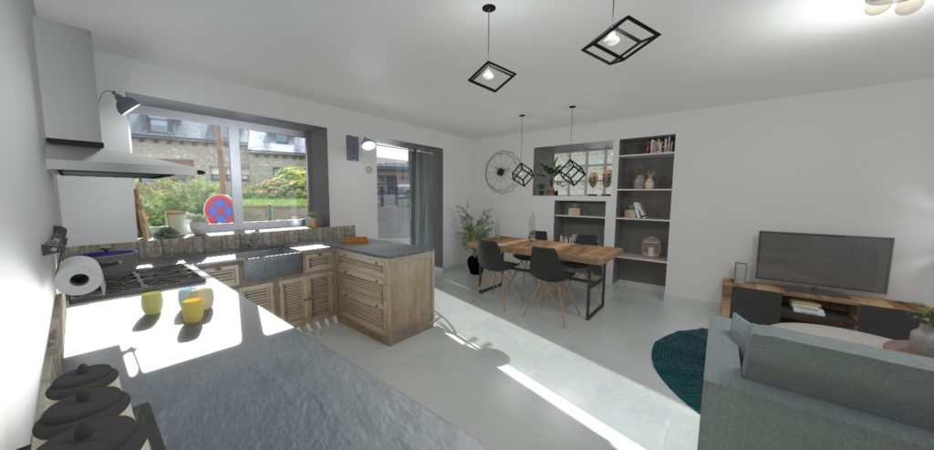 Modification du cloisonnement mais conservation des ouvertures et des points d’eau existants.