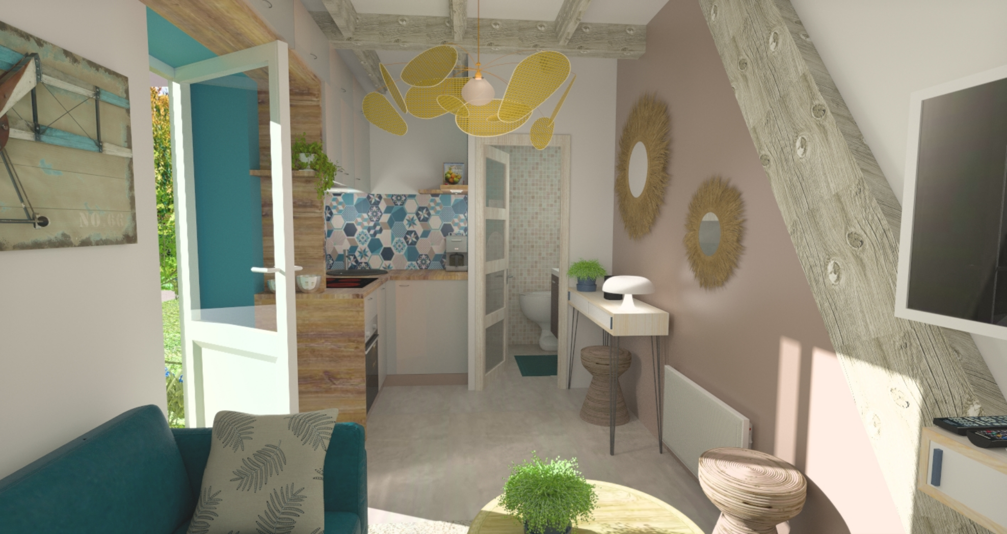 Repenser la partie salle d’eau / WC et cuisine d’une petite maison de 30 m²