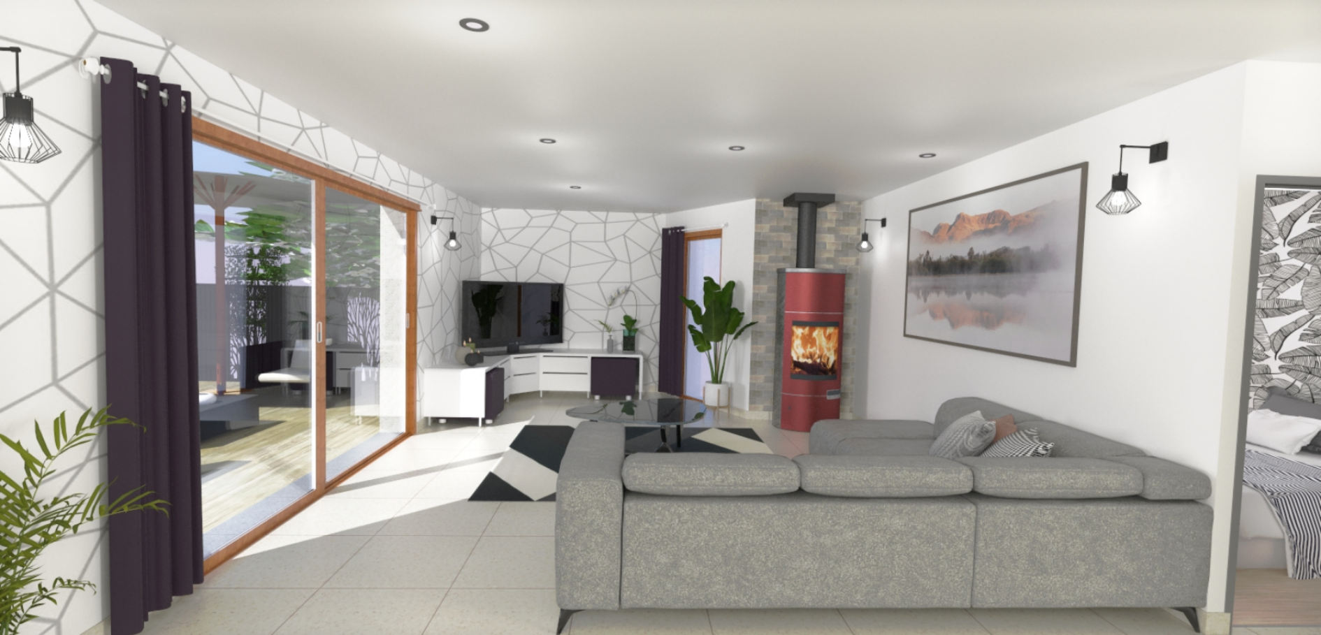 Créer une chambre au RDC dans une grande pièce de vie. Revoir l’aménagement du salon en conséquence.